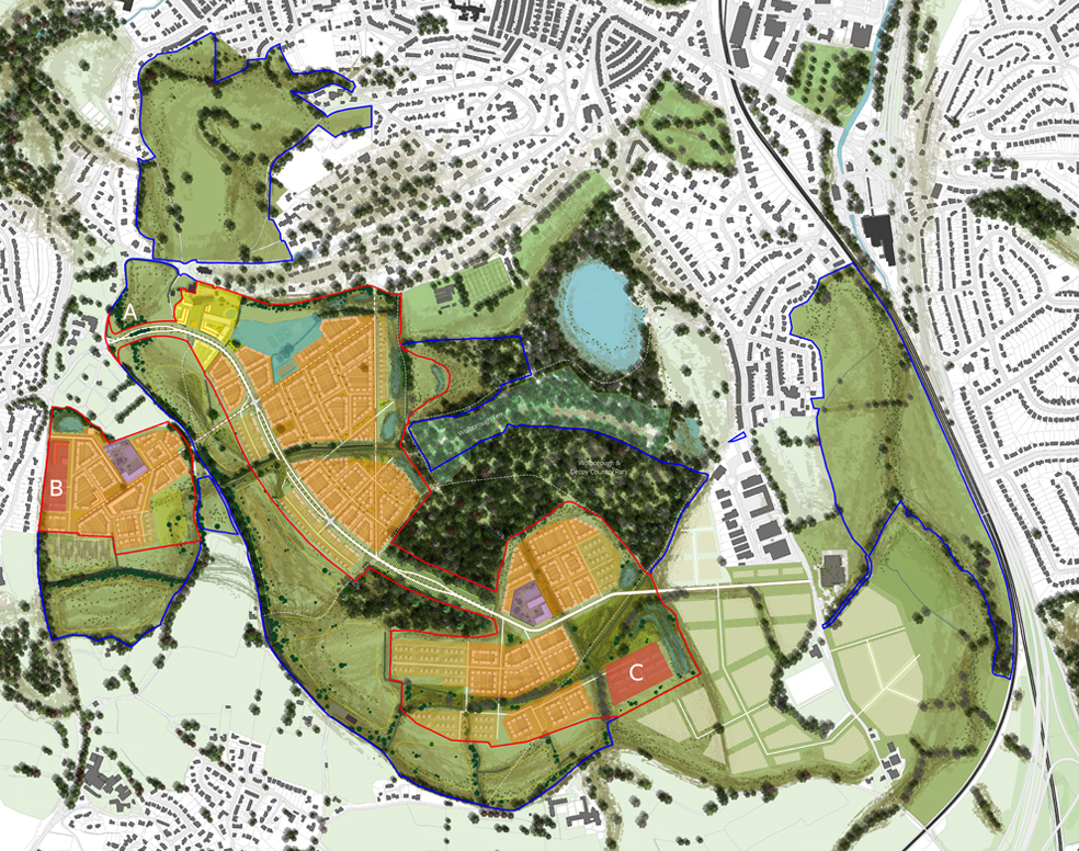 The figure above highlights the three areas of the site (A, B and C) that have been the subject to the two amendments made to the application proposals.